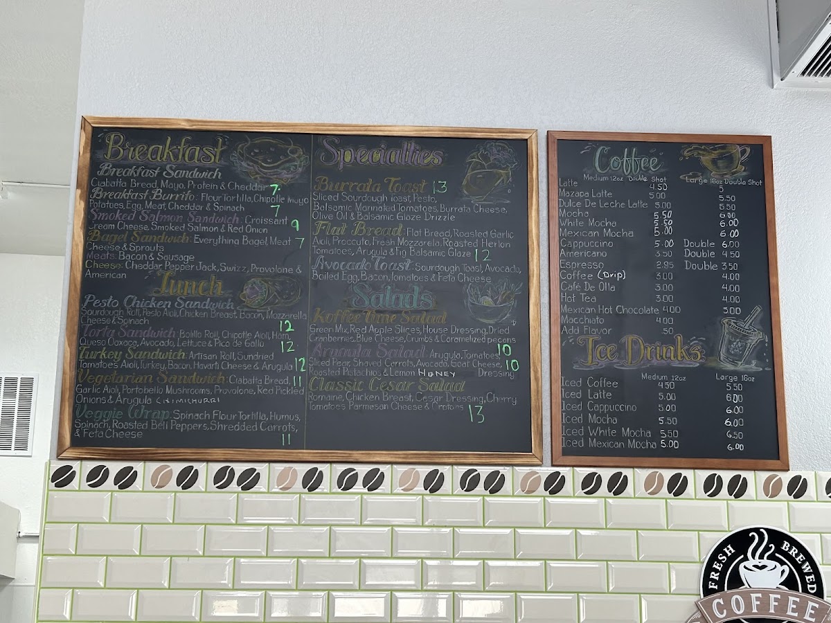 The menu at Koffee Time is a true treasure trove for coffee lovers and non-coffee enthusiasts alike. Choose from a variety of specialty drinks, including the irresistible Café De La Olla and the decadent Dulce de Leche Latte—both favorites among the regulars. If you’re in the mood for something sweet, don’t miss their delightful Mexican Hot Cocoa, which expertly balances rich chocolate flavors with a hint of cinnamon, transporting you straight to a cozy Mexican café.